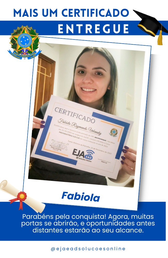 Sim nosso certificado permite que aluno faça curso técnico, faculdade ou assuma cargo público!